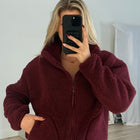 All in Cherry Crush. The Industry High Collar Jacket is crafted in thick teddy Borg with a brushed fleece lining for everyday warmth. The bold berry tone makes it a standout layer, wherever you take it.