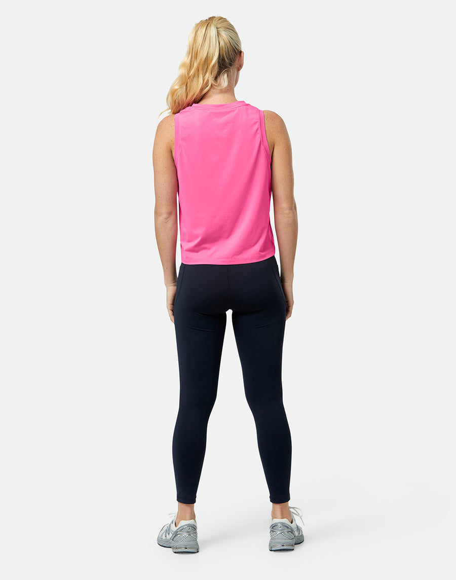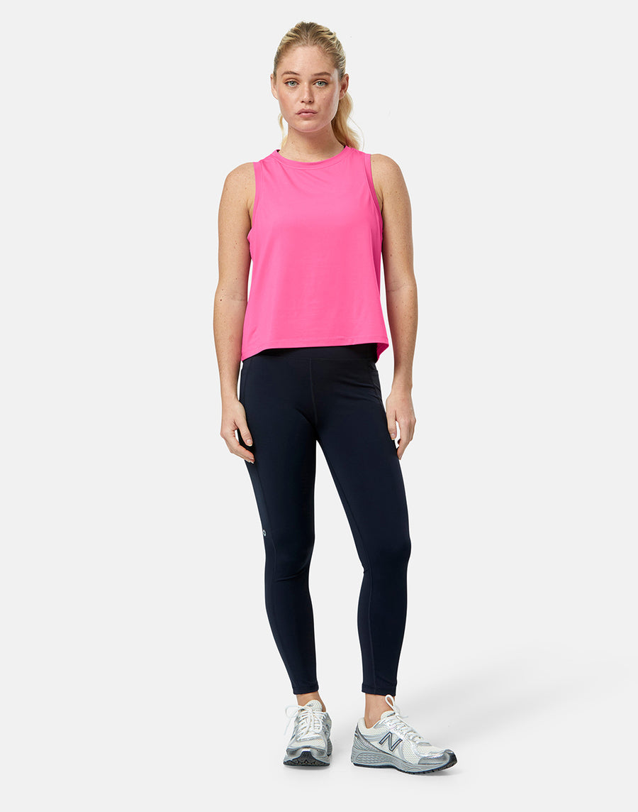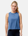 Designed to keep you cool and comfortable through every session, this cropped, boxy-style vest top features swear-wicking fabric to keep you cool through every session. The loose fit, round neckline offer ease of movement and a modern, breathable silhouette.