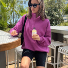 Snap Collar Sierra Sweatshirt in Crisp Pink